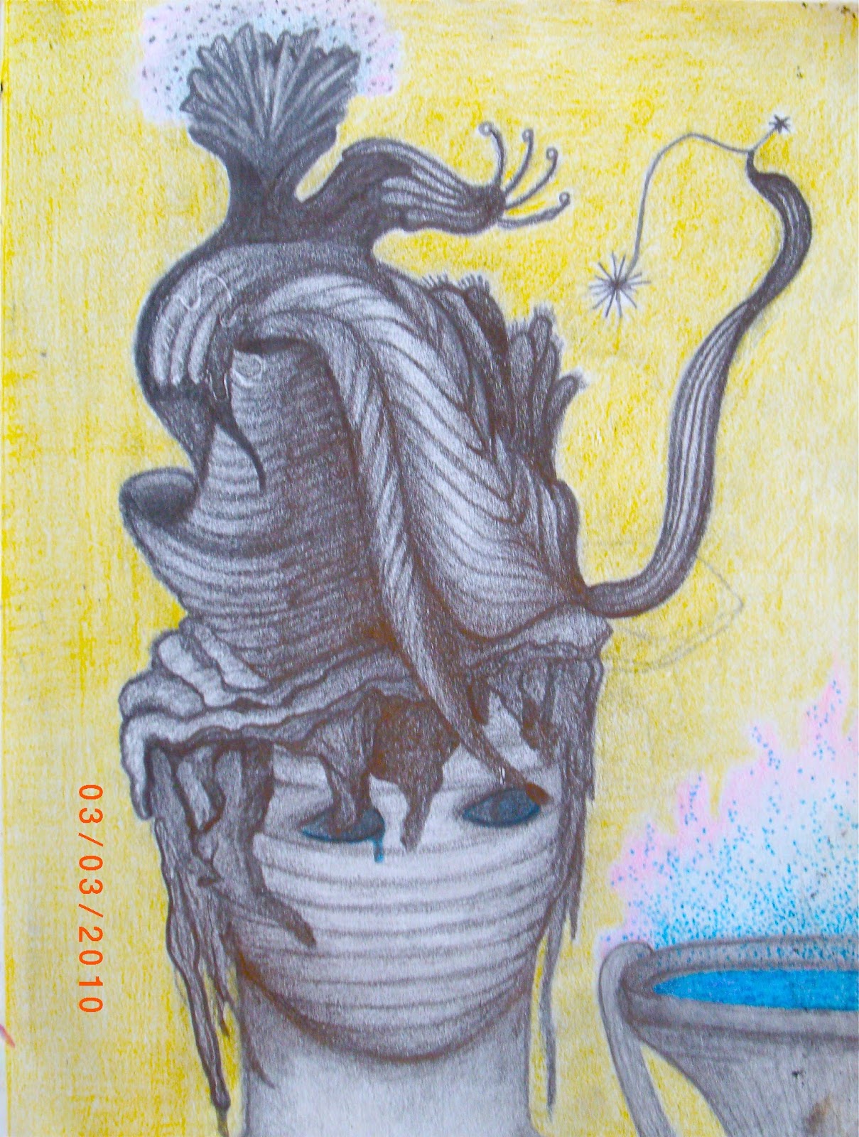 Why did I feel such a driving need to collect them? I don't know. Seeing how I was dissociated, I experienced myself as in a dream, disconnected from the world and perhaps because they were of nature, physical expressions of God, they helped me to ground myself in the physical world. And they were "safe," they needed nothing from me. But for whatever the reason, I took them home and used them to decorate, and - to create... Once again, as with the pen and pencil, I "doodled" my unconscious experience automatically - without knowing where it was going or why.